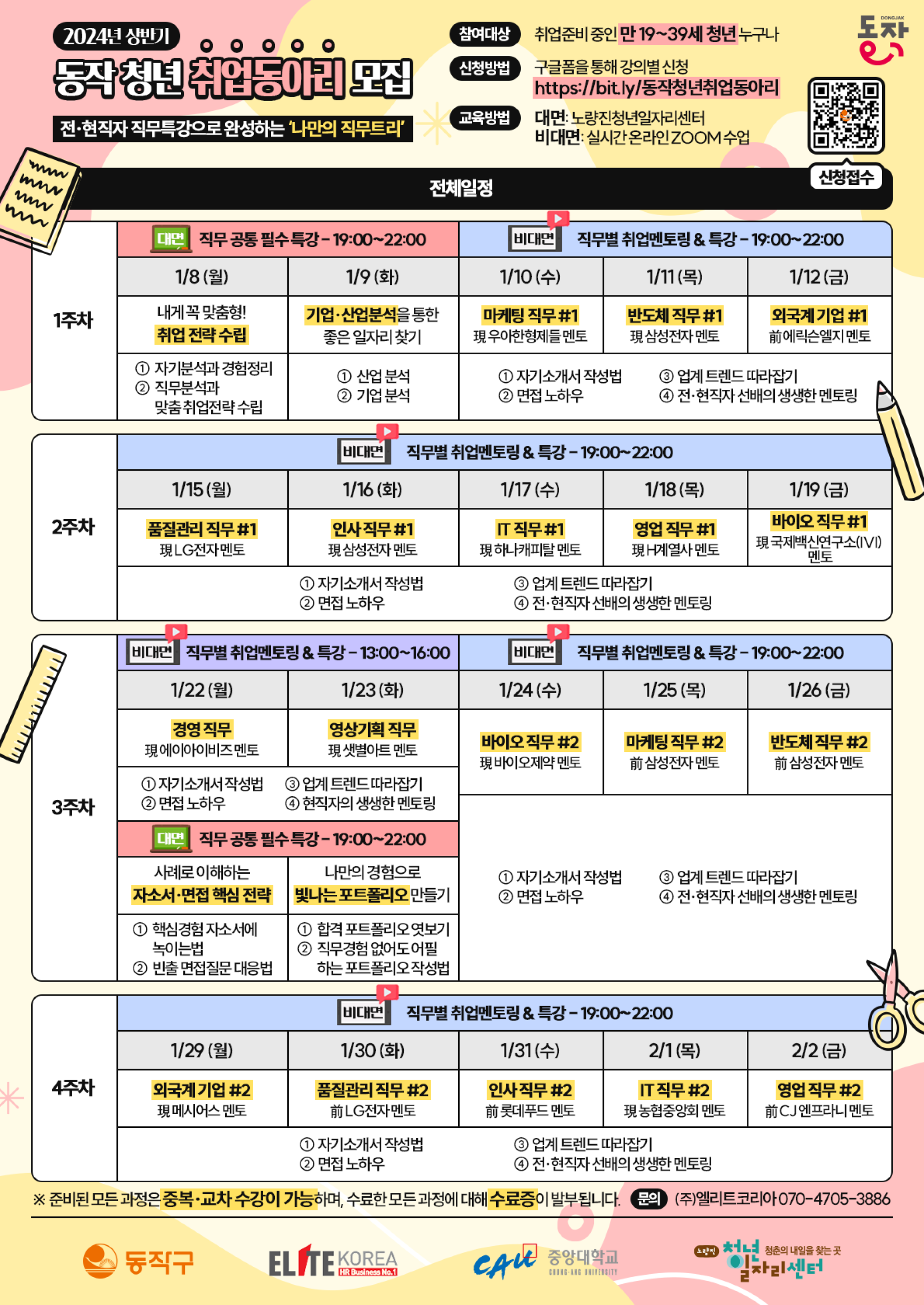 동작구에서 2024년 상반기 취업 준비중인 청년들을 위한 취업동아리를 모집하고 있습니다.
