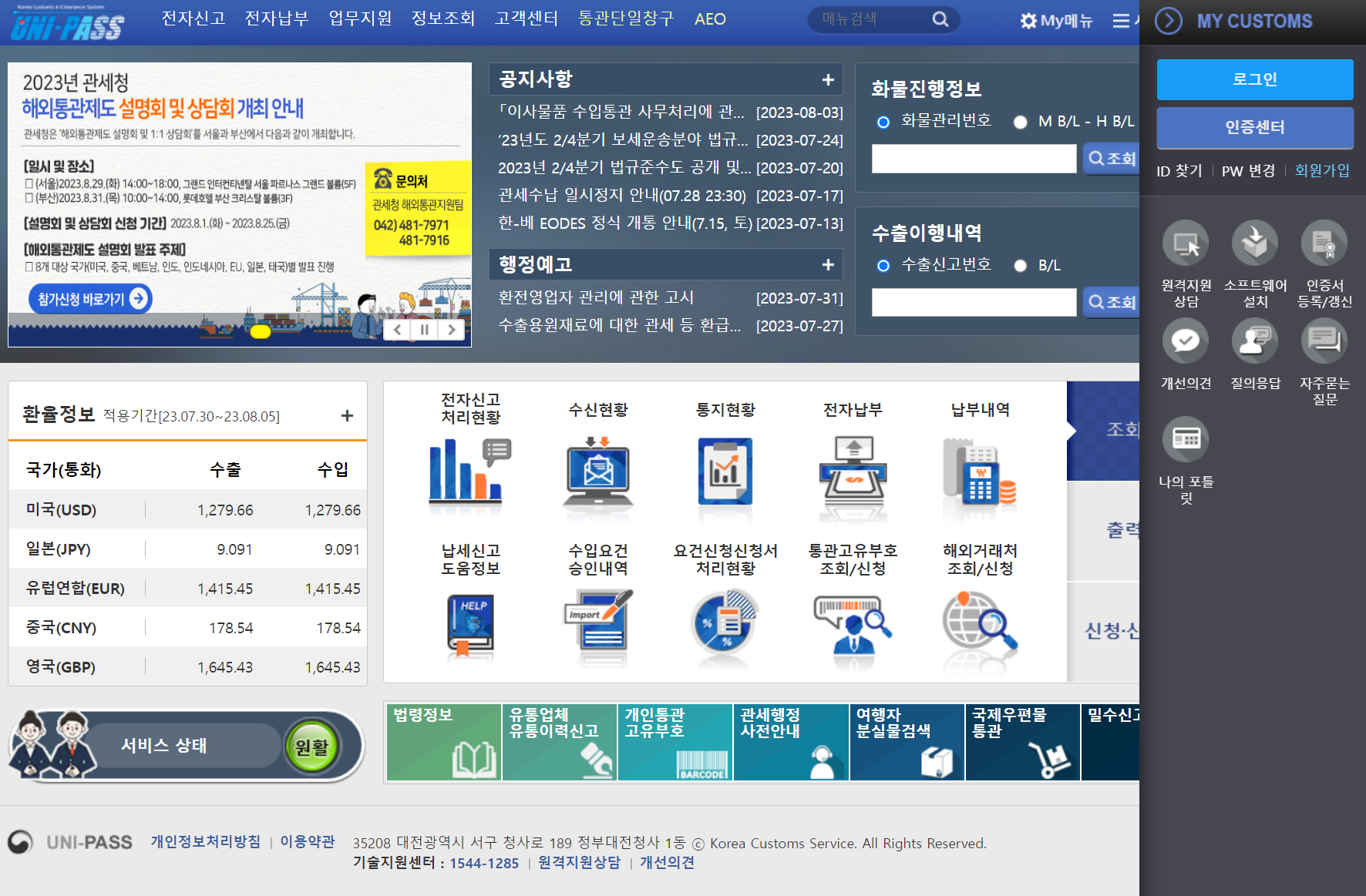검색창에 유니패스 또는 [ https://unipass.customs.go.kr/csp/index.do ] 해당 링크로 들어가주세요.