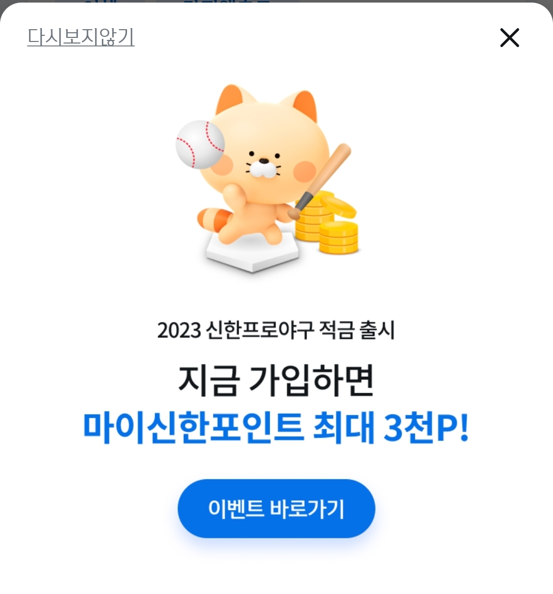 성인이 되어 야구를 보다, 신한은행에서 적금하는걸 알고 이번에 프로야구 적금을 들었습니다~!