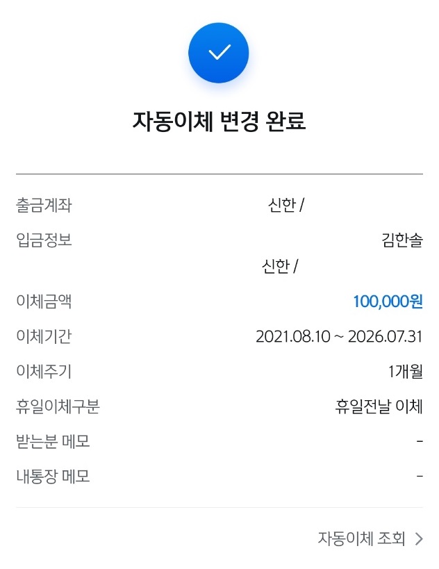 횟수도 중요하지만 금액도 중요하다는 말씀에 이번에 자동이체 금액을 올리기로 했습니다.