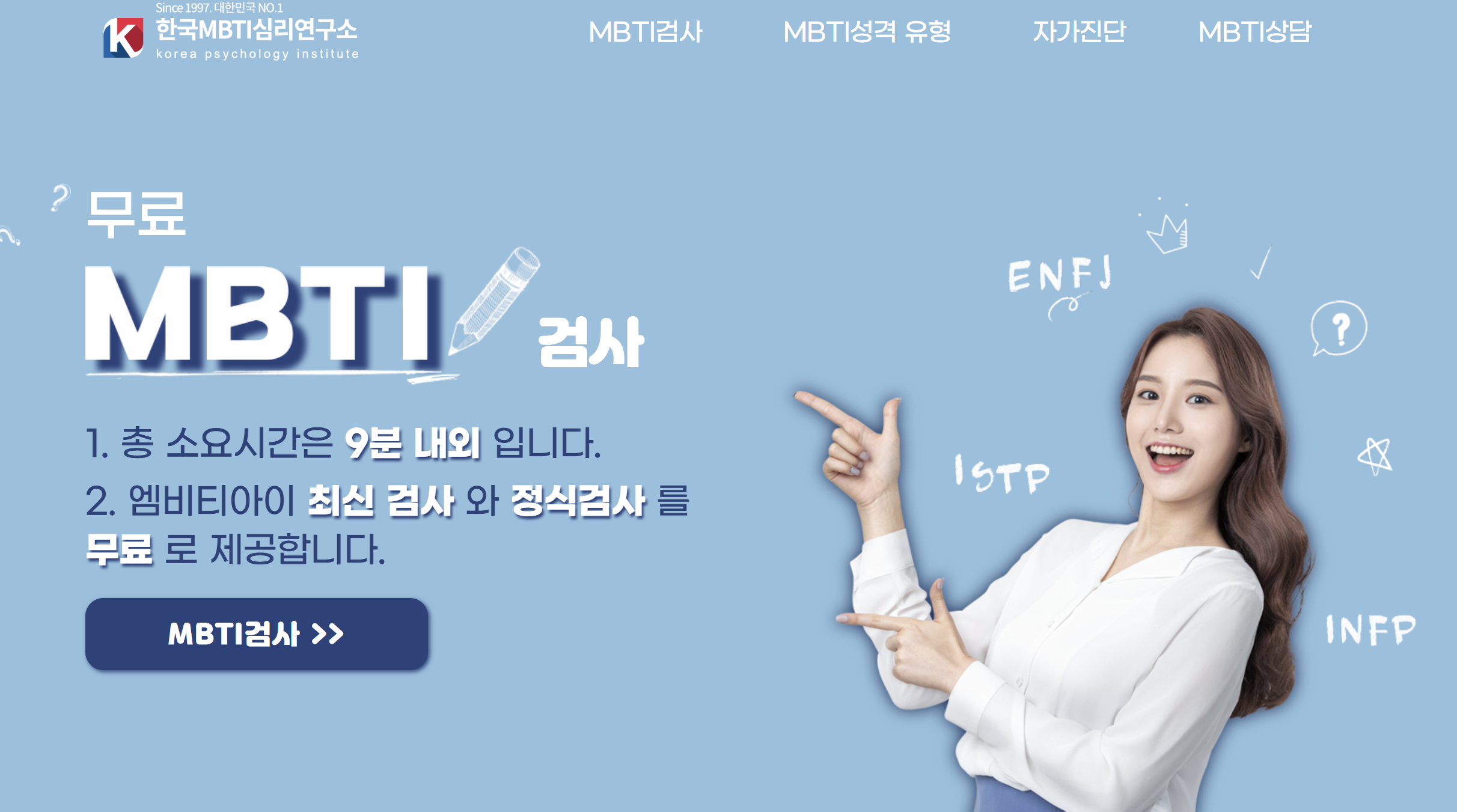 MBTI 검사 클릭을 하면 설명이 쭉쭉 나와 있는데, 저는 성격이 급하니 후다닥 맨 아래로 내려갑니다