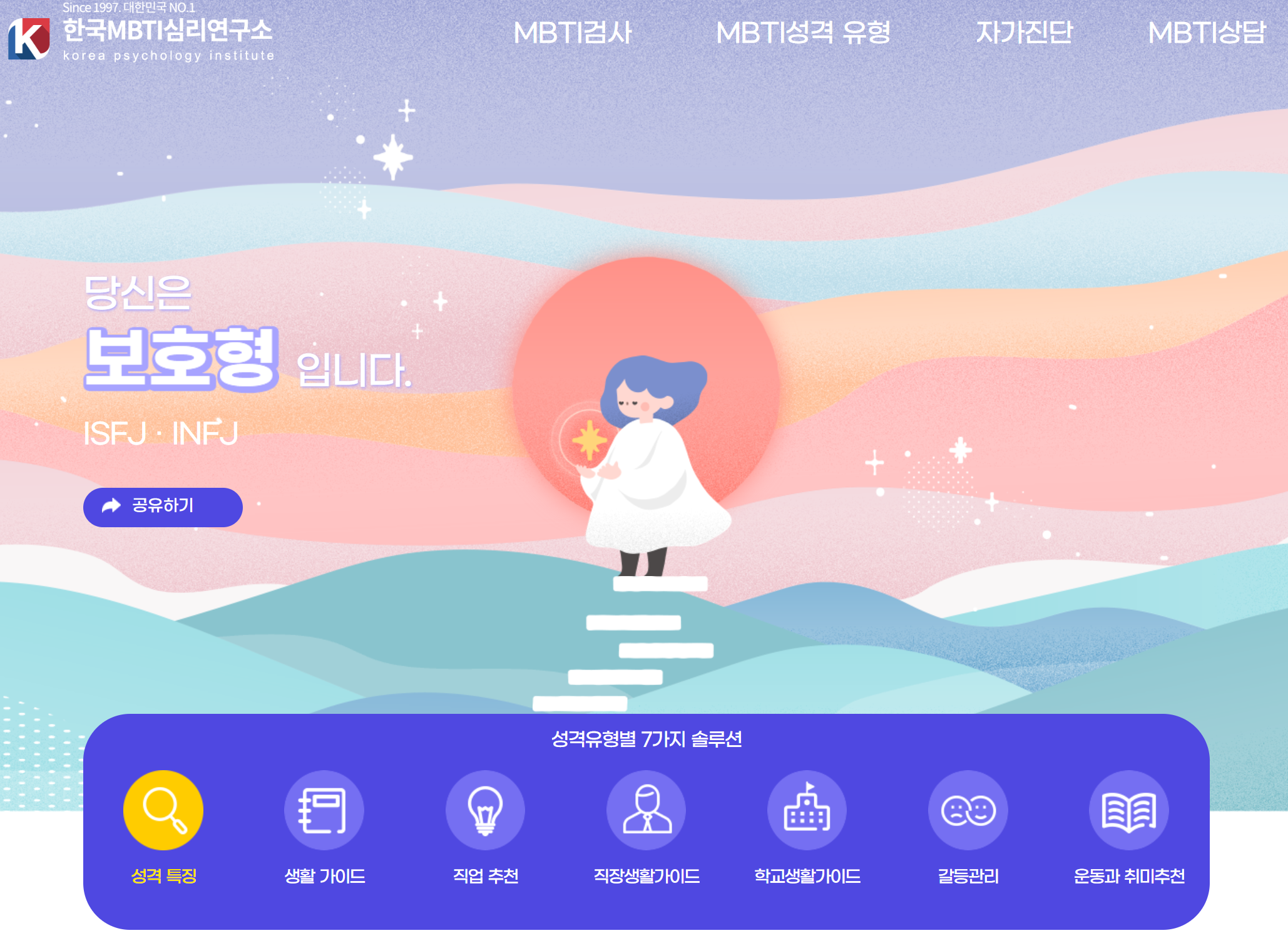 MBTI 검사 클릭을 하면 설명이 쭉쭉 나와 있는데, 저는 성격이 급하니 후다닥 맨 아래로 내려갑니다
